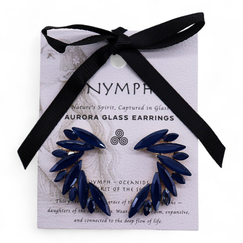 Descubra a elegância intemporal destes brincos inspirados nas asas de anjo. O design fluido em aço inoxidável oferece durabilidade e sofisticação, enquanto as gotas de vidro azul evocam o brilho do oceano.