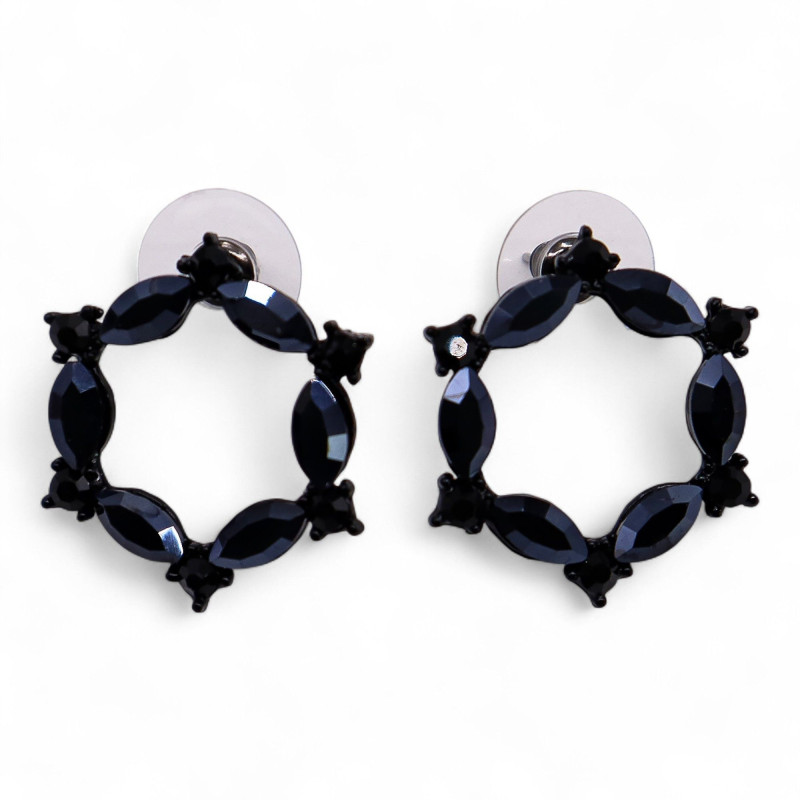 Estes elegantes brincos são forjados em aço inoxidável e vidro polido, proporcionando um brilho subtil a cada movimento.