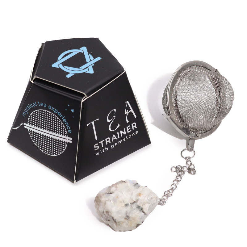 Descubra o prazer de preparar o seu chá favorito com um toque de elegância. Este infusor exclusivo apresenta uma Pedra da Lua Arco-Íris em cristal bruto, tornando cada chávena especial.