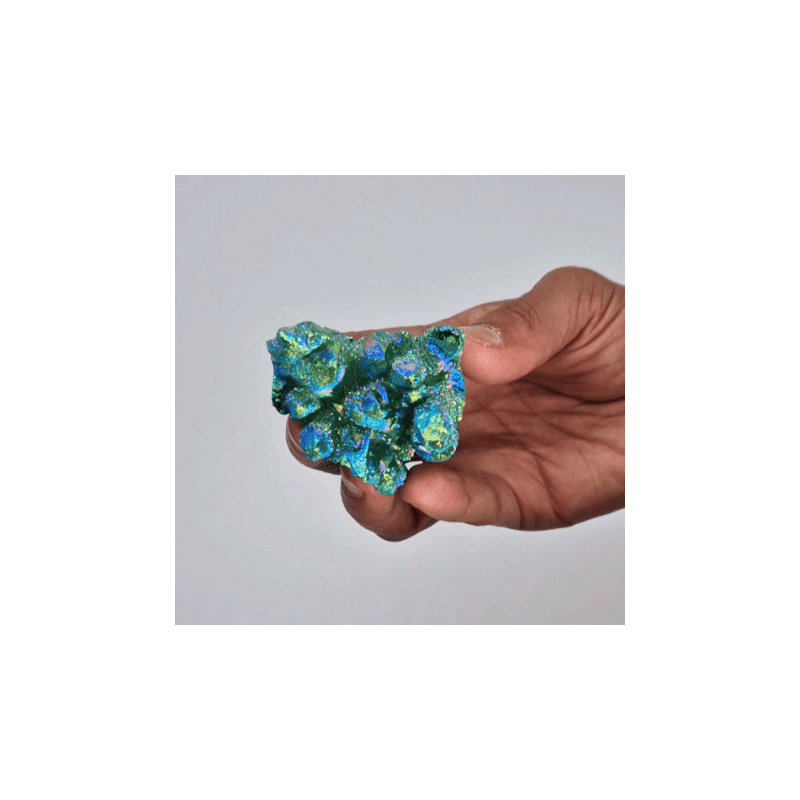 Este quartzo natural melhorado destaca-se pelo seu brilho e tonalidade verde única, resultado de um processo especial de aprimoramento.