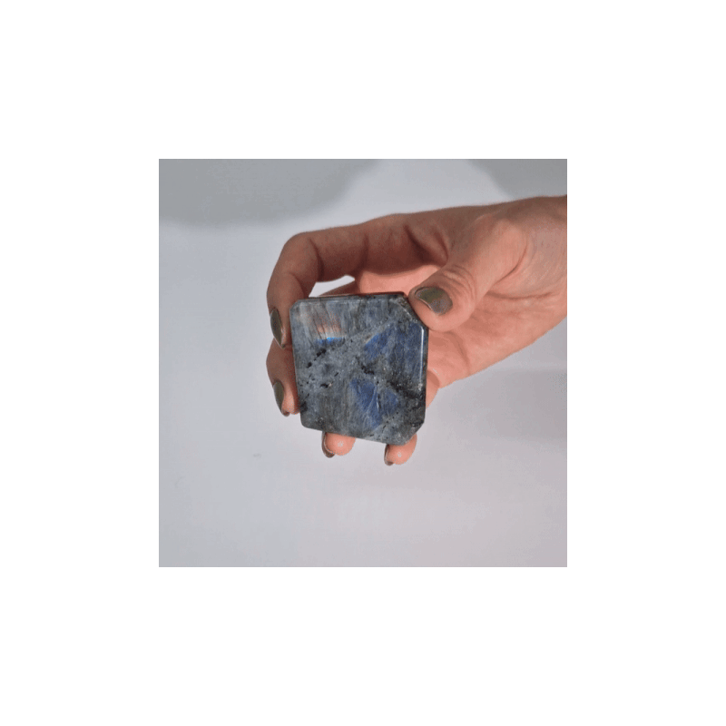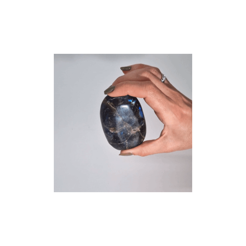 Estas pedras de labradorite, provenientes de Madagáscar, destacam-se pelo seu brilho iridescente e tons fascinantes. Cada peça é polida em formato tumba, com peso entre 80 e 168g e dimensões de 40 a 60mm.
