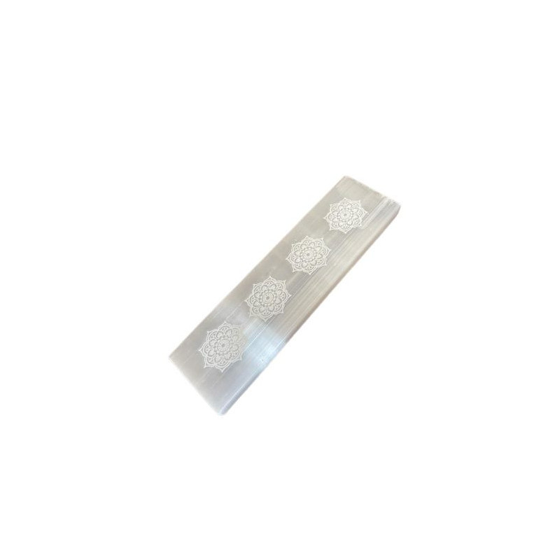 O formato plano é perfeito para barras de selenite, palosanto, cristais alongados ou composições energéticas personalizadas.