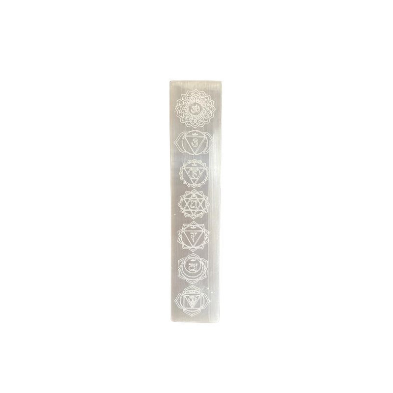 Revitalize e equilibre os seus cristais com esta placa de carga de barra plana de 20 cm, decorada com os símbolos dos sete chakras. Uma ferramenta essencial para alinhar as suas pedras com a energia de cada centro energético.