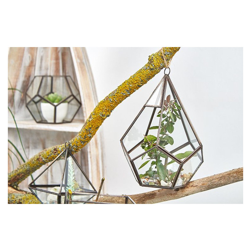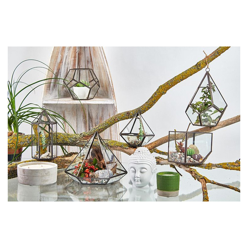 Transforme a sua casa ou escritório com este elegante terrário de vidro em formato de pentágono. Perfeito para criar pequenos jardins interiores, este terrário destaca-se pelo seu design moderno e versátil.