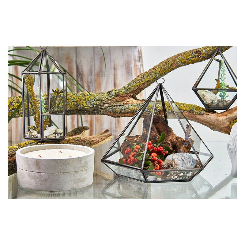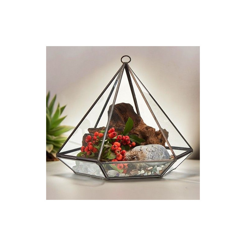 Transforme qualquer ambiente com este sofisticado terrário de vidro em formato de diamante. Perfeito para criar jardins miniatura, destacar suculentas ou exibir pequenas decorações.